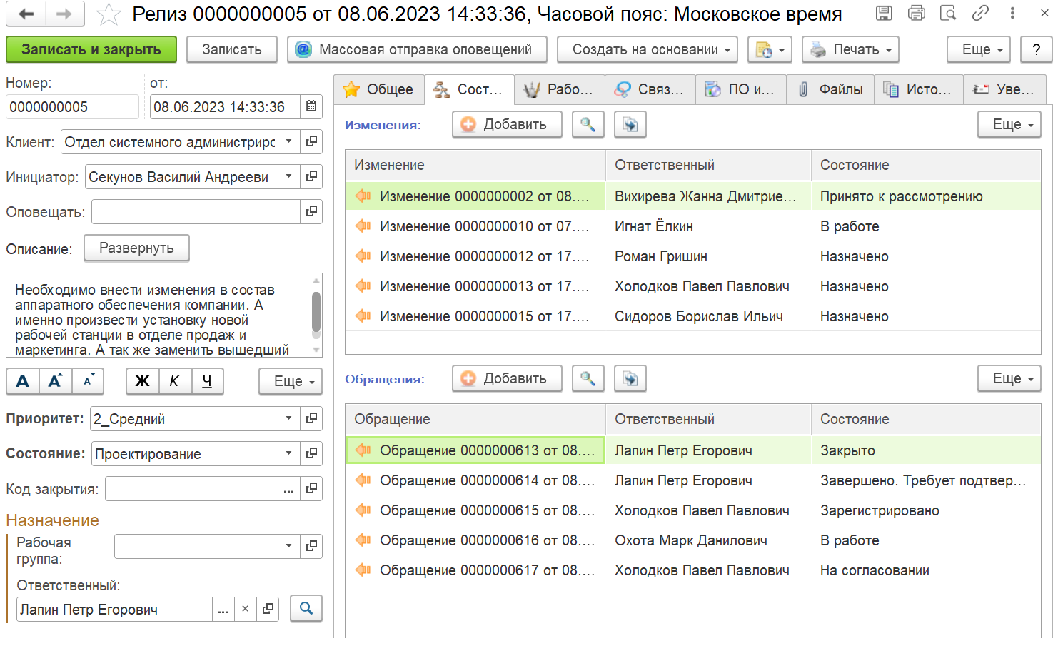 Регистрация и учет инцидентов и заявок, обработка обращений в установленные сроки по SLA, обеспечение поступления обращений через единую точку контакта, распределение нагрузки и контроль работы сотрудников сервисных подразделений, использование инструментов для автоматической регистрации и эффективного управления обращениями.