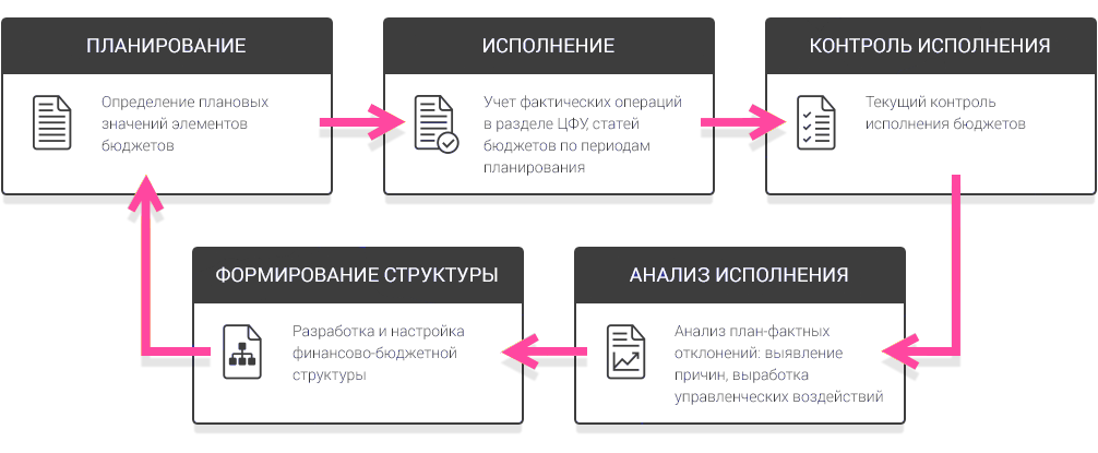 Бюджетирование в БИТ.ФИНАНС — это не разрозненные бюджеты и отчеты, а единый замкнутый цикл финансового управления, который поддерживает финансового директора на всех этапах принятия решений.